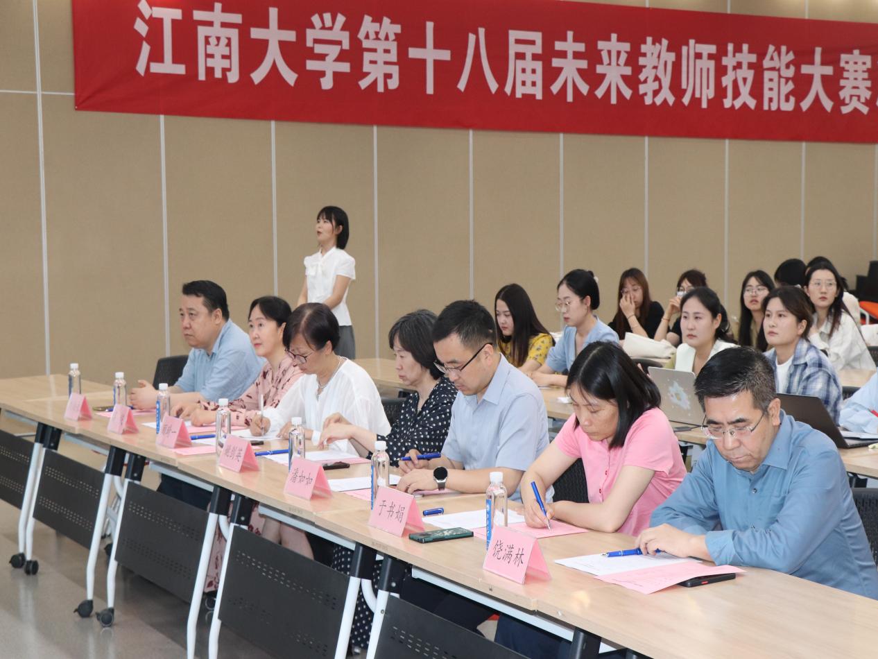 5月22日晚,由党委研究生工作部、研究生院,教务处(教师发展中心)、350vip8888新葡的京集团(教育学院)联合主办的350vip8888新葡的京集团第十八届未来教师技能大赛在北区大学生活动中心举办。350vip8888新葡的京集团党委书记姚剑英、研究生院副院长潘如如、团委副书记吴垚、外国语学院副院长顾琦一,无锡市辅仁高级中学教科室主任、特级教师饶满林,尚贤万科小学副校长、特级教师杨广祥,尚贤融创小学副校长、高级教师王丹,无锡市学而思教育培训中心有限公司校园渠道负责人潘永强,350vip8888新葡的京集团党委副书记、副院长李萍,副院长张春梅、于书娟,教师代表高侠、刘向永、胡智丹出席比赛并担任评委。来自全校500余位师生现场观看比赛。