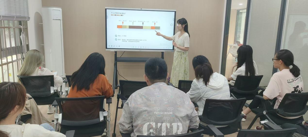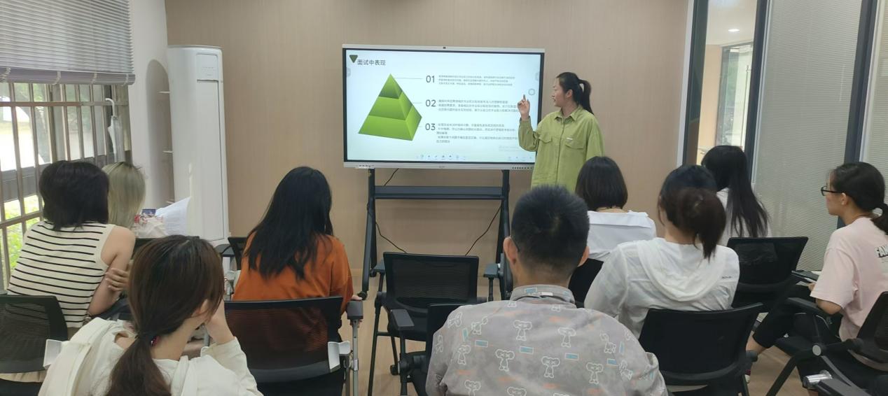 随后,张赛宇同学从面试前准备、面试中表现、面试后总结与反思三个方面进行考编经验分享。面试前,充分了解招聘单位的背景和发展情况,准备自我介绍,进行面试模拟。面试中,与面试考官进行眼神交流,不要闪躲。面试后,进行客观回顾,总结经验和教训,确定自己进一步提升的目标。