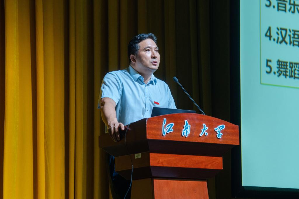 会上,伍红林发布《350vip8888新葡的京集团2025—2026学年“学在人文”“大思政”育人项目》。项目包含“师道人文”“榜样人文”“书香人文”“行知人文”“奋进人文”五大板块,意从“师道”传承到“榜样”引领,于“书香”中品味,在“行知”间实践,最终凝聚为“奋进”的力量。希望新生在这份学院精心准备的成长菜单中汲取养分,努力成长为可担民族复兴大任的时代新人。