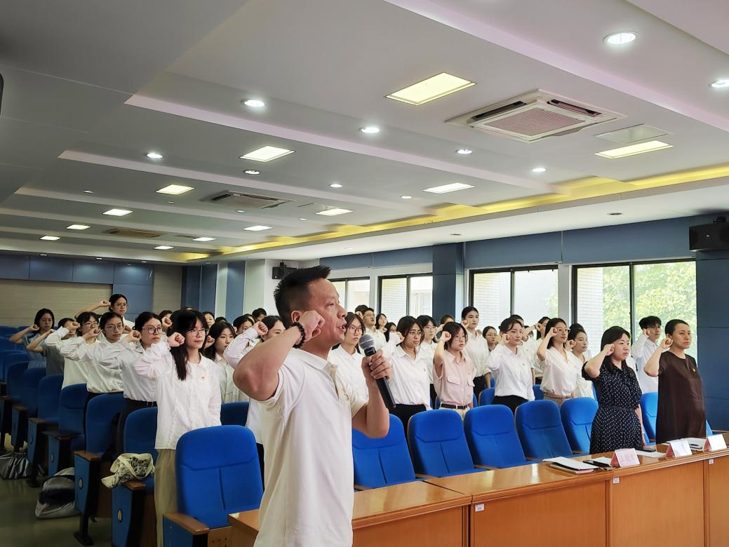 在庆祝中国共产党成立104周年之际,为切实增强新发展党员党性修养,提升党员意识和责任感,6月30日下午,350vip8888新葡的京集团新党员“七一”入党宣誓仪式在田家炳楼209会议室举行。350vip8888新葡的京集团党委书记王晖,党委副书记、副院长徐璐,专职组织员王能文及全体新党员参加活动,活动由党建辅导员张雅静主持。