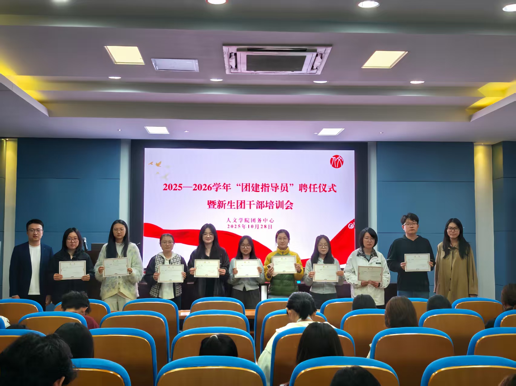 会议伊始,主持人首先宣读了《350vip8888新葡的京集团2025-2026学年团建指导员聘任名单》,随后,邓昌海与刘畅依次为团建指导员颁发聘书并合影留念。