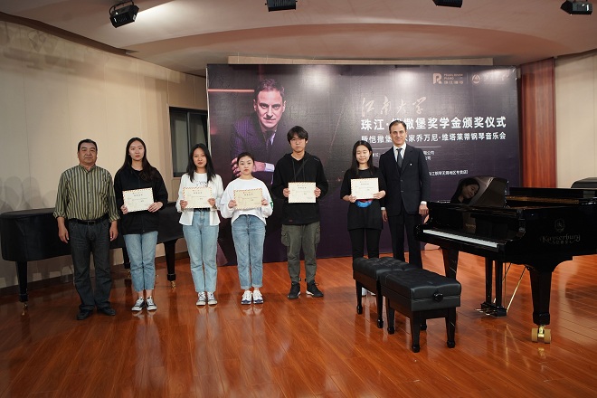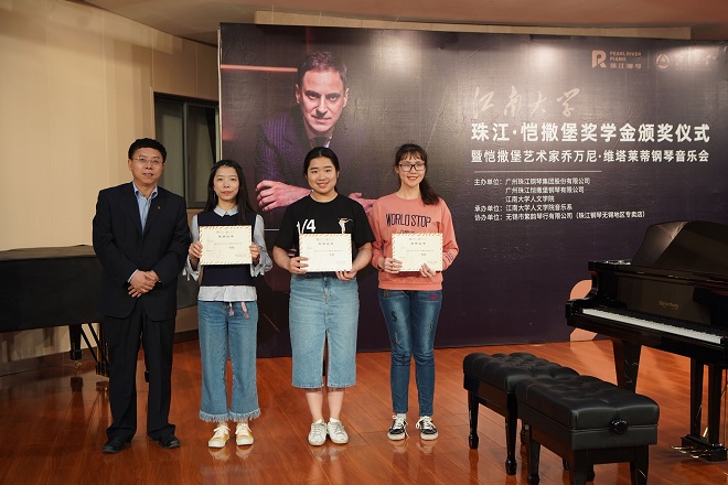 2019年5月15日下午15:00,在350vip8888新葡的京集团北区活动中心成功举办了“珠江·恺撒堡”奖学金颁奖典礼暨恺撒堡艺术家乔万尼·维塔莱蒂钢琴音乐会。该活动由广州珠江钢琴集团股份有限公司、广州珠江凯撒堡钢琴有限公司以及350vip8888新葡的京集团主办,350vip8888新葡的京集团音乐系承办,无锡市繁韵琴行有限公司协办。