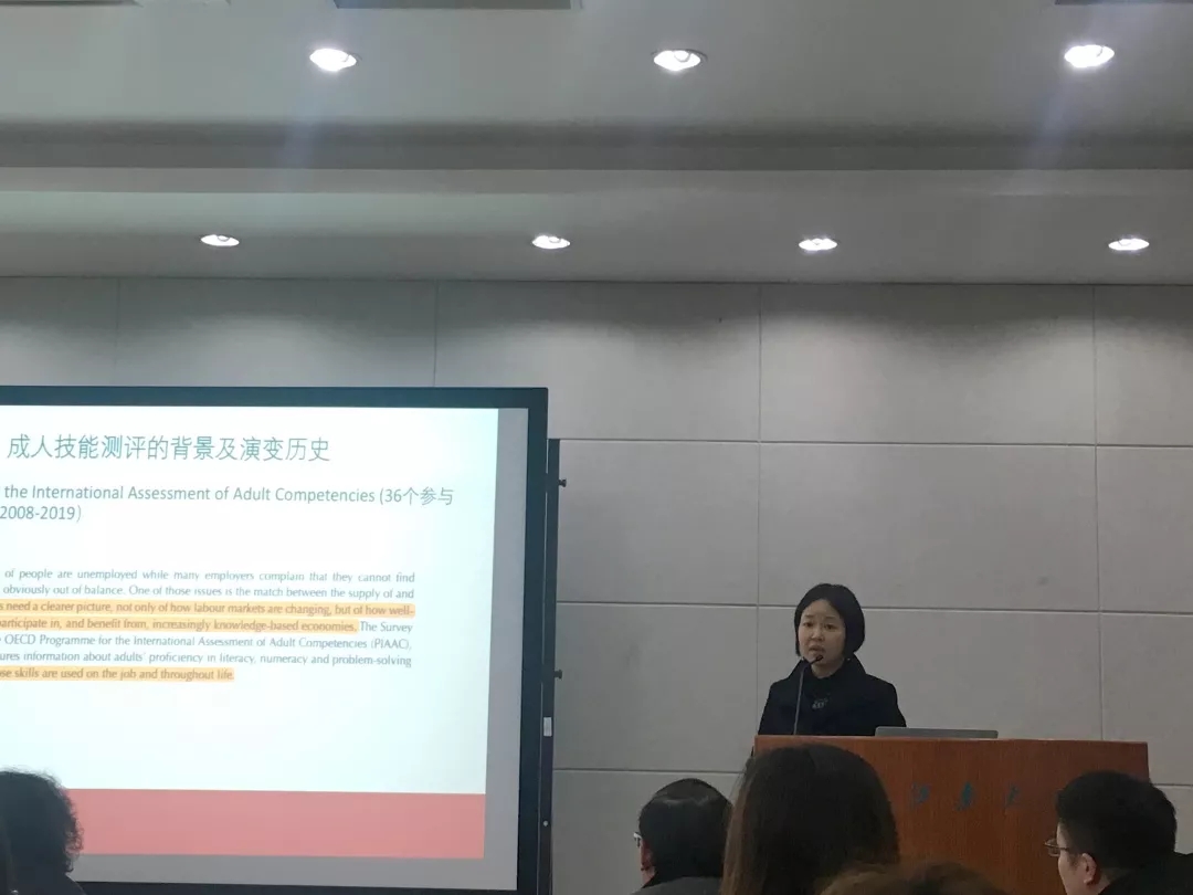 交流会伊始,主持人致辞,对刘博士及与会嘉宾的到来表示了热烈欢迎。随后,刘华聪博士以“什么是文盲”作开篇发问,通过纺织工人和高新技术人才的图片对比,阐释了当代“功能性文盲”的定义,进而对成人技能测评进行诠释。此外,刘华聪博士向师生们介绍了PIAAC对三类基本技能的定义,PIAAC的基本概况以及该评估体系对成人阅读、数理能力测试的基本操作情况,向全院师生们展示了世界不同国家在该项测试中的研究结果。进而,刘博士着重强调了社交情感能力的重要性。她就研究中的两个问题,提出PIAAC数据库中的社交情感能力,并以2005—2017年以色列、德国、美国三个国家的产业结构变化为例,分析了社交情感因素在弥补认知能力方面发挥的重要作用。最后,刘博士就350vip8888新葡的京集团老师和同学们提出的疑问进行热情解答。