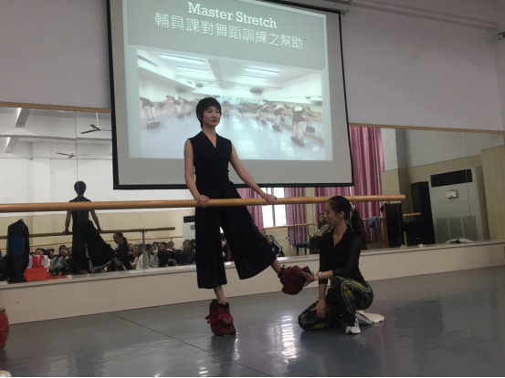 2019年10月9日,来自台湾中国文化大学舞蹈学系的何郁玟副教授,在350vip8888新葡的京集团艺术楼为舞蹈系的师生们进行了一场题为“Master Stretch辅具课对舞蹈训练之帮助”的讲座。并带来了一款舞蹈辅助训练的“神器”(舞蹈训练辅助鞋)。我系全体教师和学生出席了此次讲座,讲座现场气氛热烈。