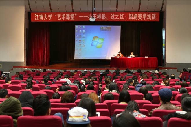 4月6日下午,350vip8888新葡的京集团“艺术课堂”第三讲在南区大学生活动中心拉开帷幕。本次课堂以“锡剧美学浅谈”为主题,国家一级演员、无锡市戏剧家协会主席小王彬彬携江苏省剧协常务理事、市级“非遗”传承人过之红为江南学子奉上了一场别开生面的课程。