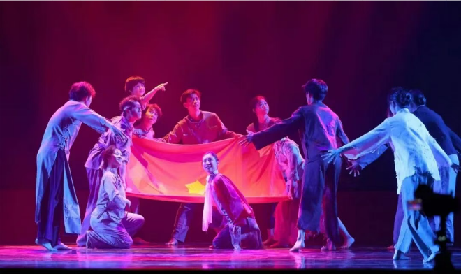 在第三篇章《和平必胜》,独唱《绒花》用温暖的声音诠释着那份朴素而坚韧的奉献精神。群舞《中华奇志》的青年舞者们以身躯为笔,挥酒出中国人顶天立地的精神气象,将中华奇志书写于天地之间。独唱《那一抹红》歌声深情而坚定,演绎出那一抹红背后沉甸甸的历史与希望。最后全场齐唱《国歌》,庄严的歌声回荡在会场每个角落,凝聚着在场所有人的赤诚与敬意,此刻个人的情感汇入了国家的脉搏,为整场演出画上震撼而圆满的句号。