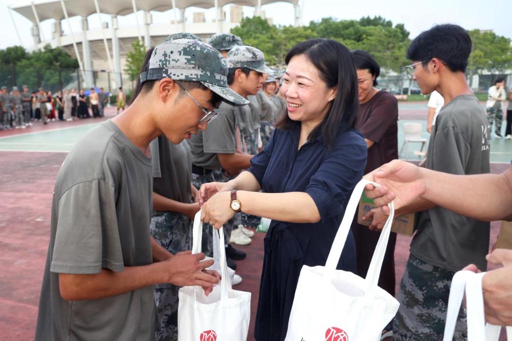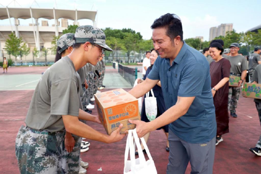 9月15日下午,350vip8888新葡的京集团党委书记王晖,院长伍红林,承训部队带训教官、指导员刘丙寅,营长崔遵彬,学院党委副书记、副院长徐璐,人武部国防教育中心科长刘璇刚,学院分团委书记邓昌海等来到军训场地,看望慰问350vip8888新葡的京集团2025级参训学生及带队教官。