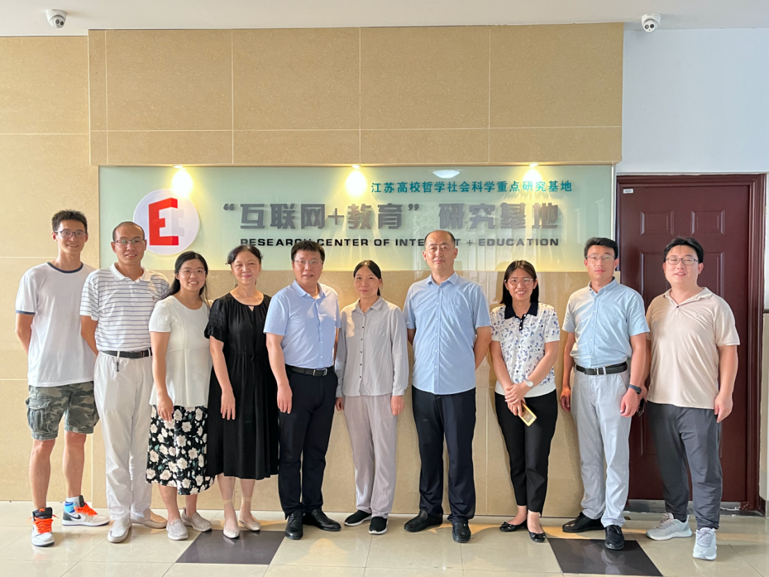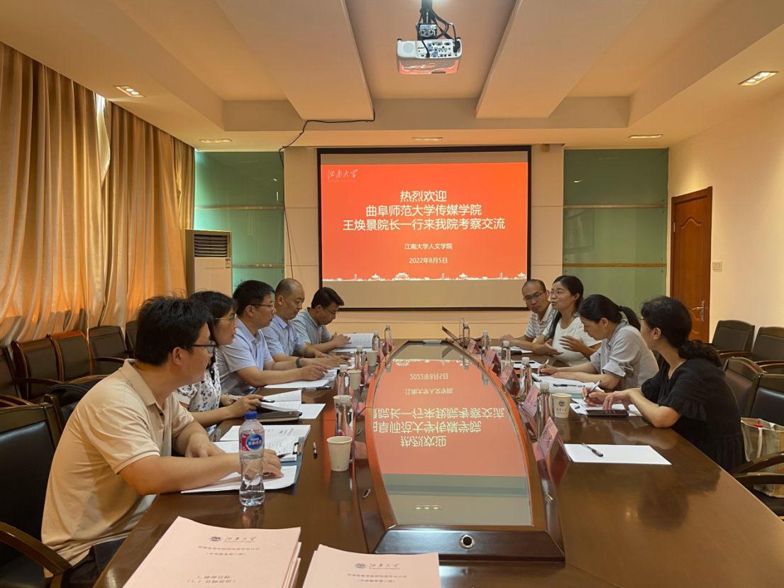 2022年8月6日,曲阜师范大学传媒学院院长王焕景、副院长赵可云、教育技术系主任吴焕庆、党委委员徐振国、办公室主任张洪孟一行五人,来到350vip8888新葡的京集团考察交流。350vip8888新葡的京集团副院长于书娟、教育技术系主任王志军、实验室主任杨小红、教育技术系副主任牟智佳、教育技术系教师代表舒杭参与了此次交流活动。整个活动由350vip8888新葡的京集团教育技术系主任王志军主持。