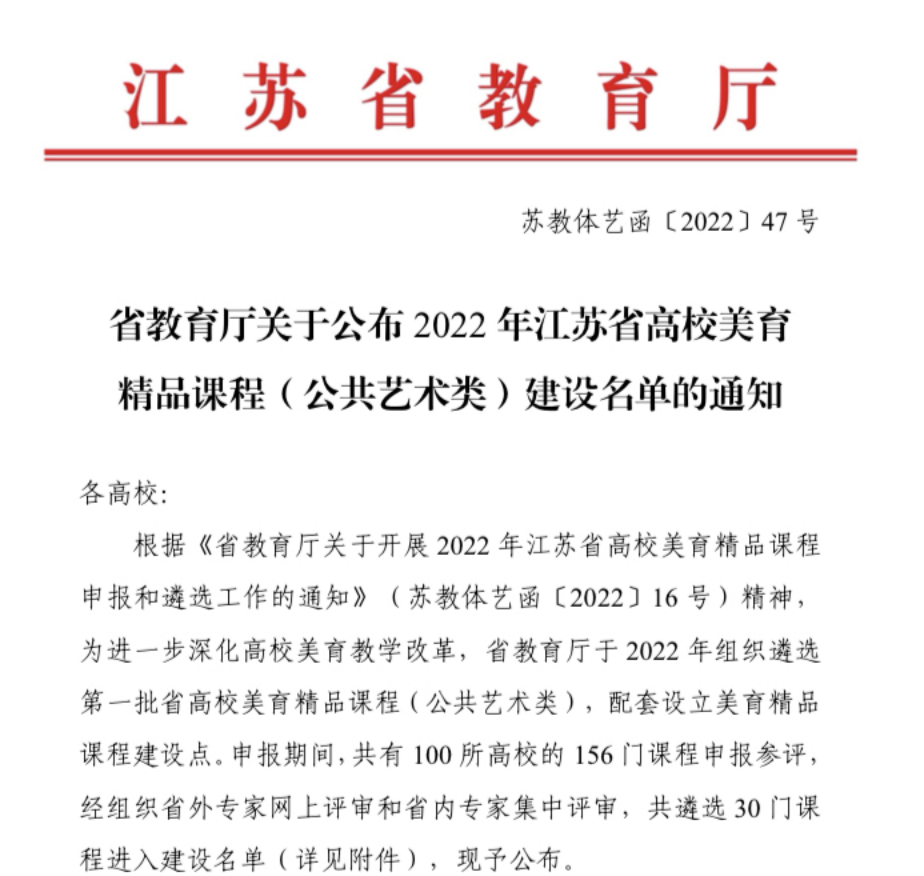 《舞蹈美育与综合素质教育》入选首批江苏省高校美育精品课程建设名单