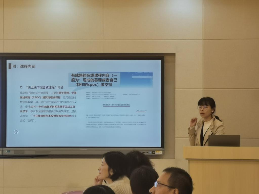会议伊始,于书娟先介绍了此次会议召开的初衷和目的,指出课程建设是一流本科专业建设和人才培养质量提高的重要支撑。随后,省级一流本科课程立项负责人王靖、国家级一流课程立项负责人杨晖和顾琦一,分别就线上线下混合式一流课程、线上一流课程、线下一流课程建设给大家介绍了经验。