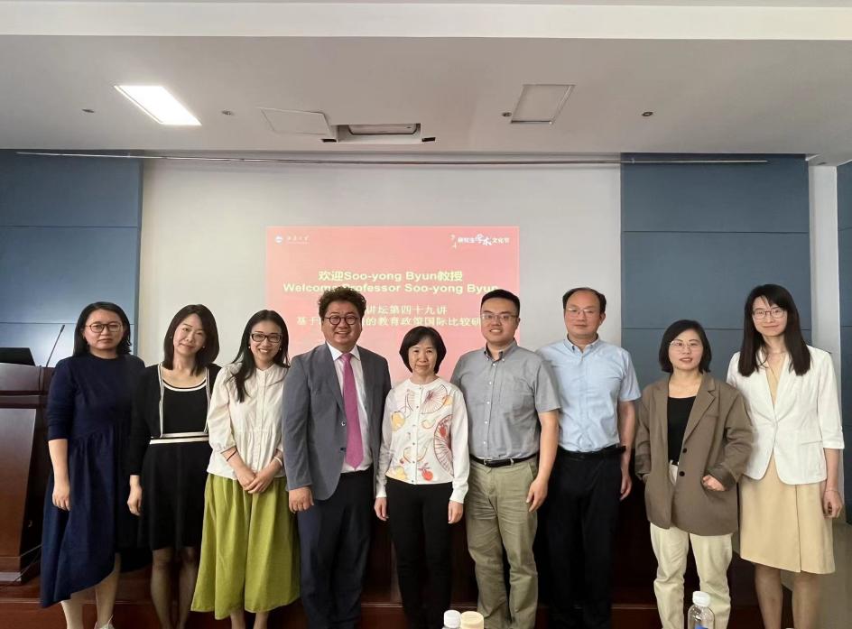 2024年5月17日上午,由350vip8888新葡的京集团研究生院主办、350vip8888新葡的京集团承办的江南讲坛第四十九讲在田家炳楼209报告厅顺利举行,讲座邀请到宾夕法尼亚大学教育理论与政策、人口学与亚洲研究的联席教授,梨花女子大学教育学系客座教授Soo-yong Byun,他的报告题目为“基于跨国数据的教育政策国际比较研究”。本场讲座由350vip8888新葡的京集团院长助理屈廖健主持,350vip8888新葡的京集团党委书记姚剑英、教育系党支部书记王文礼及350vip8888新葡的京集团、外国语学院相关研究领域的教师及研究生参加了讲座。