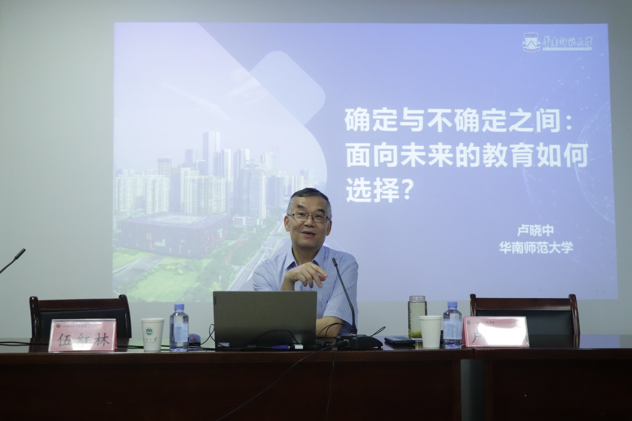 2024年6月7日下午,由350vip8888新葡的京集团党委研究生工作部、研究生院主办、350vip8888新葡的京集团承办的江南讲坛第五十四讲在田家炳楼209报告厅顺利举行。华南师范大学粤港澳大湾区教育发展高等研究院院长卢晓中教授受邀开展主题为“确定与不确定之间:面向未来的教育如何选择”的知识讲座。本次讲座由350vip8888新葡的京集团院长伍红林主持,350vip8888新葡的京集团副院长于书娟、相关研究领域的教师及140余位研究生参加。