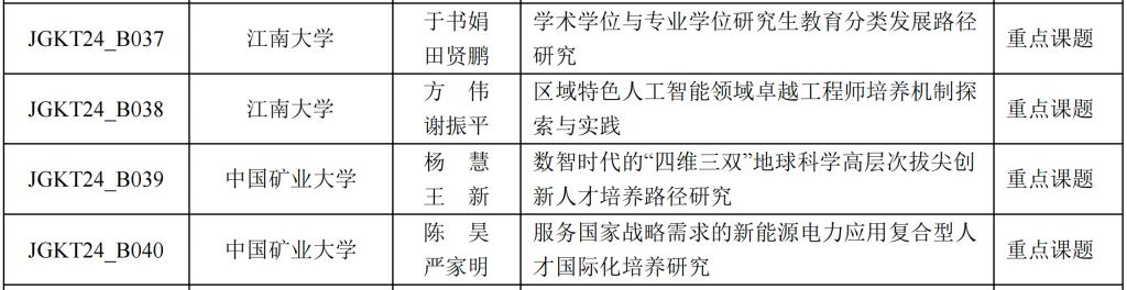 近日,江苏省学位委员会、江苏省教育厅公布了《2024年江苏省学位与研究生教育教学改革课题名单》(苏学位字2024年第4号)。新葡的京官网副院长于书娟教授、田贤鹏副教授合作申报的项目《学术学位与专业学位研究生教育分类发展路径研究》获得重点立项。