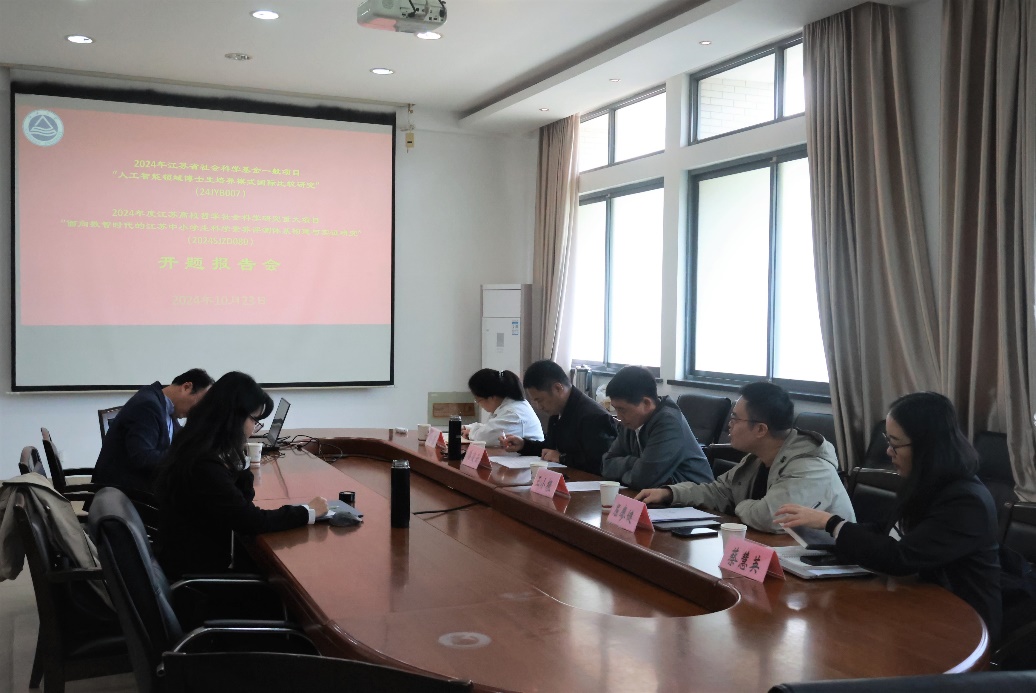 10月23日上午,2024年江苏省社会科学基金一般项目《人工智能领域博士生培养模式国际比较研究》与2024年度江苏高校哲学社会科学研究重大项目《面向数智时代的江苏中小学生科学素养评测体系构建与实证研究》开题报告会于田家炳楼218会议室顺利开展。本次会议邀请了350vip8888新葡的京集团王小根教授、屈廖健教授、潘凌云教授作为评议专家,由蔡慧英副教授作为会议主持。社科处孙蕾老师参加会议。