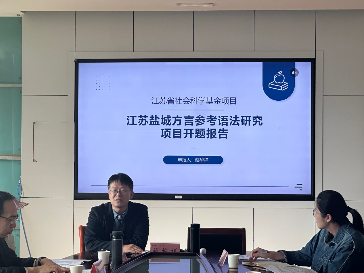 随后,蔡华祥教授对课题进行了阐述。他介绍了“参考语法”的概念,并指出该课题将以地理语言学的视角,结合参考语法的特征,从语言接触的角度深入阐释江淮方言处于南方方言和北方官话过渡区的重要价值。江苏省还未有参考语法相关研究成果,全面构建江苏盐城方言的参考语法体系,可以为江苏其他市县的方言研究提供参考语法的描写范式,从而推动江苏方言参考语法研究的深入发展。