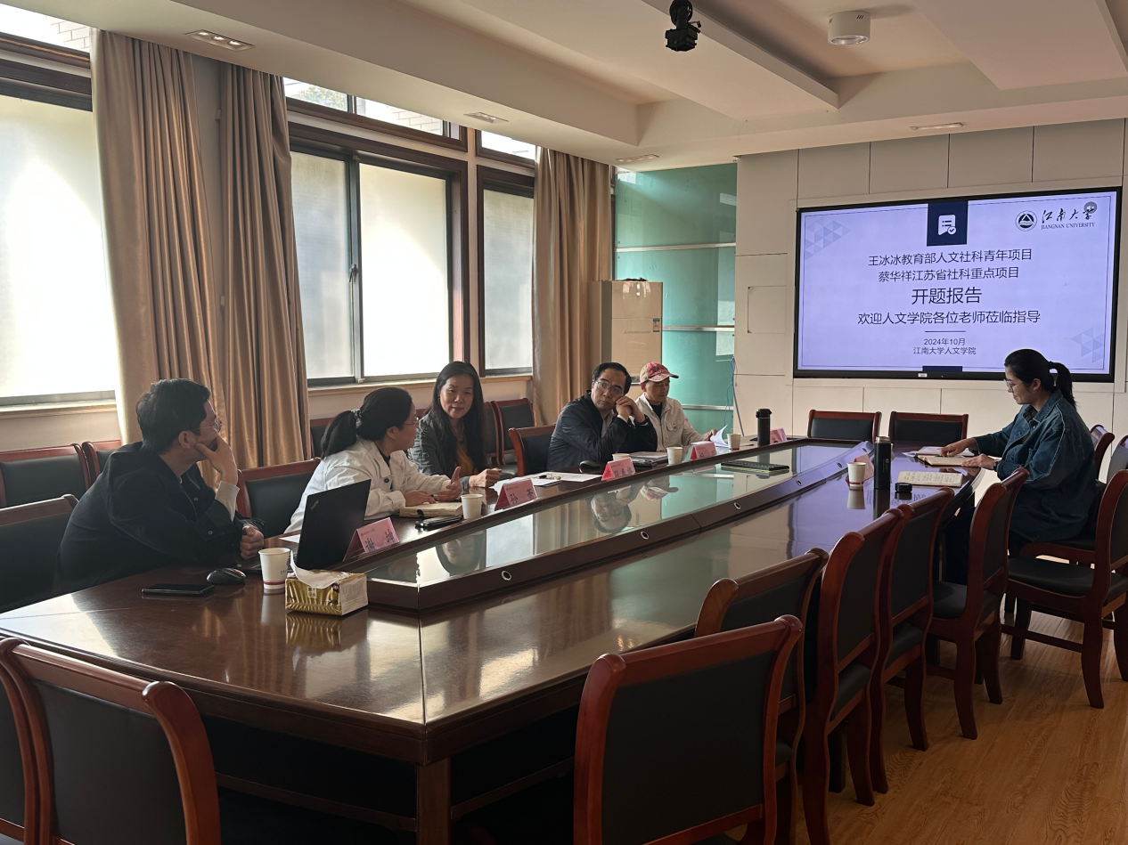 2024年10月23日下午,教育部人文社科青年项目《人工智能背景下网络文学产业伦理问题研究》(主持人:王冰冰)与江苏省社科基金重点项目《江苏盐城方言参考语法研究》(主持人:蔡华祥)开题报告会于田家炳楼207会议室举行。出席本次报告会的专家有杨晖教授、郭勇教授、谢坤副教授,副院长张春梅教授、社科处孙蕾老师也到会指导,相关专业的研究生列席旁听。