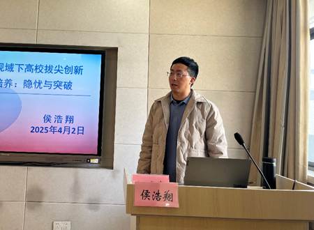 首先,侯浩翔副教授以《新质生产力视域下的高校拔尖创新人才贯通式培养》为题,深入探讨了科技创新背景下高校拔尖创新人才培养的系统性革新。他通过分析当前贯通式培养政策方案、课程教学、组织管理和评价考核中存在的问题,提出了一系列优化路径。侯博士强调,新质生产力的发展亟需高校在人才培养中实现政策统筹、课程贯通、组织协同和评价多元化的整体变革,为高等教育改革提供了重要参考。