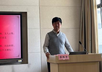 第二场报告由中国人民大学博士、350vip8888新葡的京集团讲师梁博宇主讲,他以《文学史研究的时间与空间——以苏轼在密州的老境书写为例》为题,为听众打开了一扇文学研究的新视窗。他从时空双重视角出发,重新审视了文学史研究的维度,并且以苏轼在密州的创作为案例,生动展示了地理空间对作家精神世界和审美情趣的深刻影响。梁博士指出,只有兼顾时间与空间的双重分析,才能更全面地还原文学史场景,理解作品的文化意义。