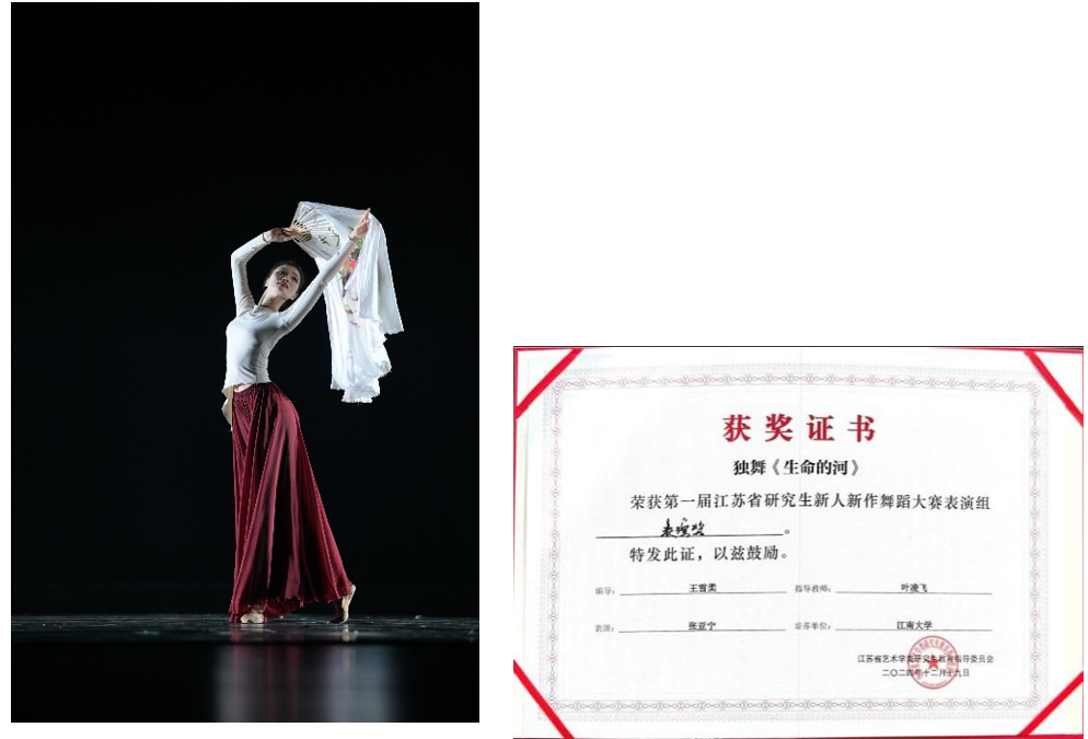 江苏省研究生新人新作舞蹈大赛代表了我省高校舞蹈硕士编创技能和舞台表演能力的最高水平。350vip8888新葡的京集团研究生院与研究生工作部高度重视,为学院参赛提供多方面的支持。本次参赛经过主办单位层层筛选,三位研究生以视频形式顺利通过初赛。最终由舞蹈系冯程程老师带队赴南京艺术学院参加省内总决赛。