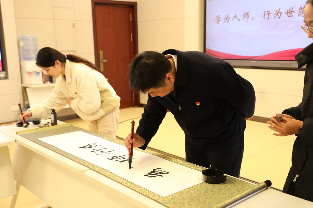 倪松涛与支部同学共同书写“学为人师,行为世范”