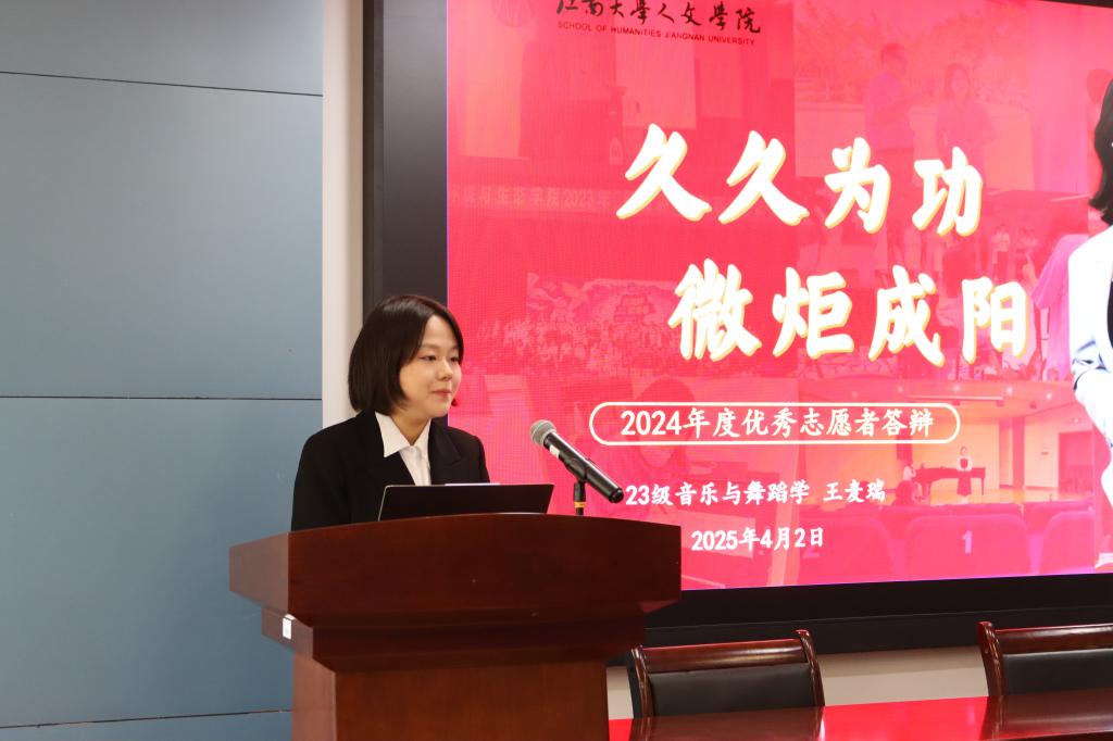最后,王剑星对本次答辩进行点评。他高度赞赏了本次答辩的各位志愿者,对同学们在志愿活动中表现出的真诚与美好感到欣慰。他指出,本次优秀志愿者评选答辩不仅是一场风采展示,更是一堂生动志愿精神思政课,他鼓励更多的人文学子向10位候选人学习,积极弘扬志愿精神,让青春与时代发展同频共振。