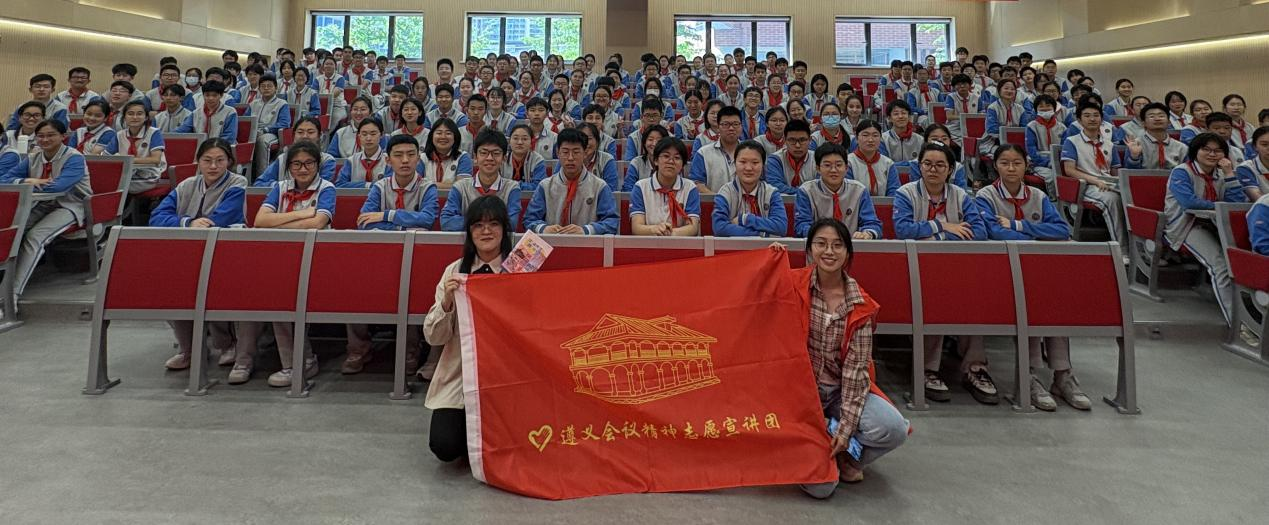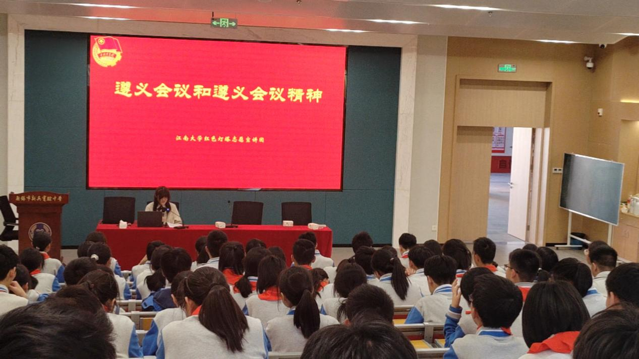 为深入学习贯彻习近平新时代中国特色社会主义思想,全面落实“传承红色基因、讲好遵义故事”的重要指示精神,4月25日下午,350vip8888新葡的京集团红色灯塔志愿宣讲团走进无锡市新吴实验中学,为学生们带来了一场关于遵义会议精神的深度解读,让红色基因融入青春血脉,推动遵义会议精神在新时代焕发新活力。