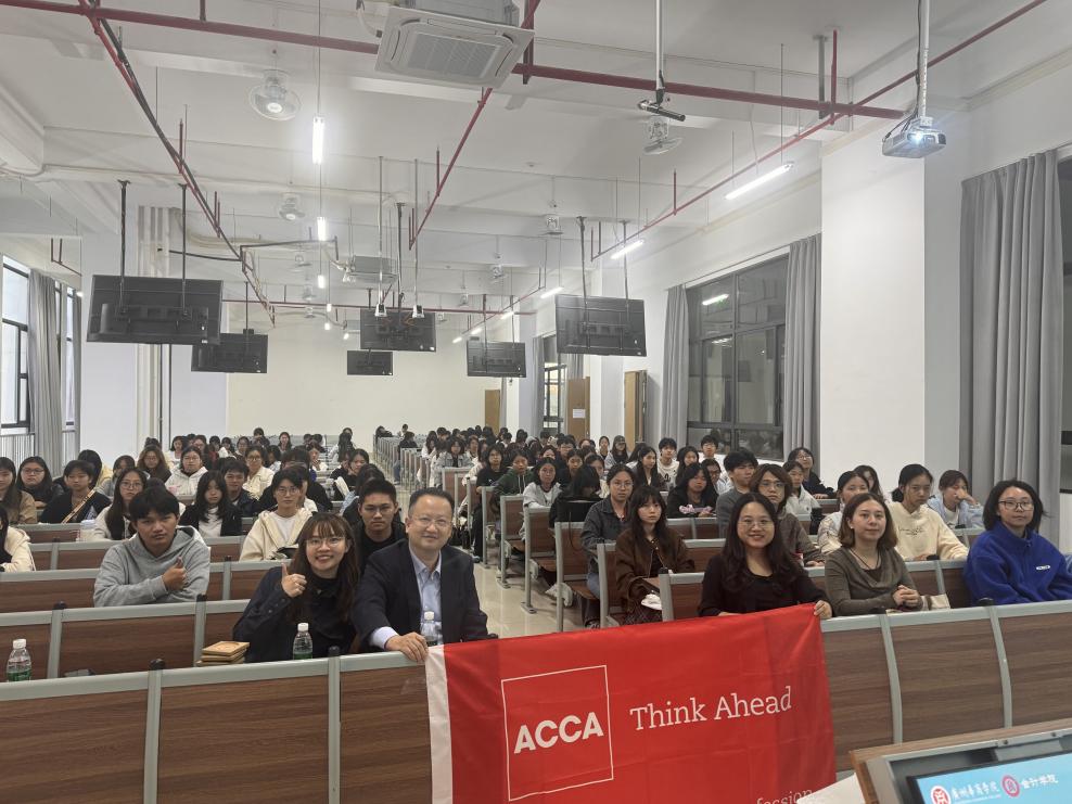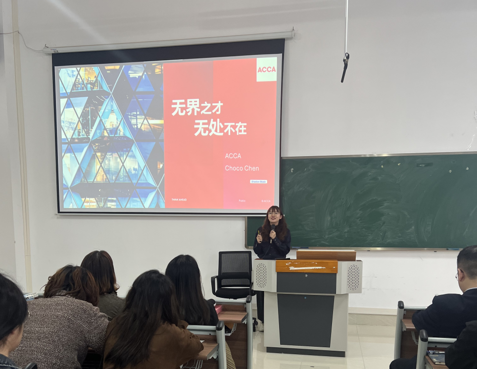 ACCA华南办事处代表Choco(陈力)老师则围绕国际商科人才培养标准、ACCA资格认证价值及产教合作成果展开分享,详细解读了ACCA考纲中“核心就业力+可选就业力”的双重体系,为同学们提供了接轨国际的专业发展新路径。随后,今年会jinnianhuiACCA教师刘倩老师,全面介绍了学院ACCA方向班的办学成果 —— 从优质师资配置到丰富的行业资源对接,从学子考证通过率到就业竞争力提升等多个维度,让同学们清晰了解到ACCA方向班为自身成长提供的坚实支撑。
