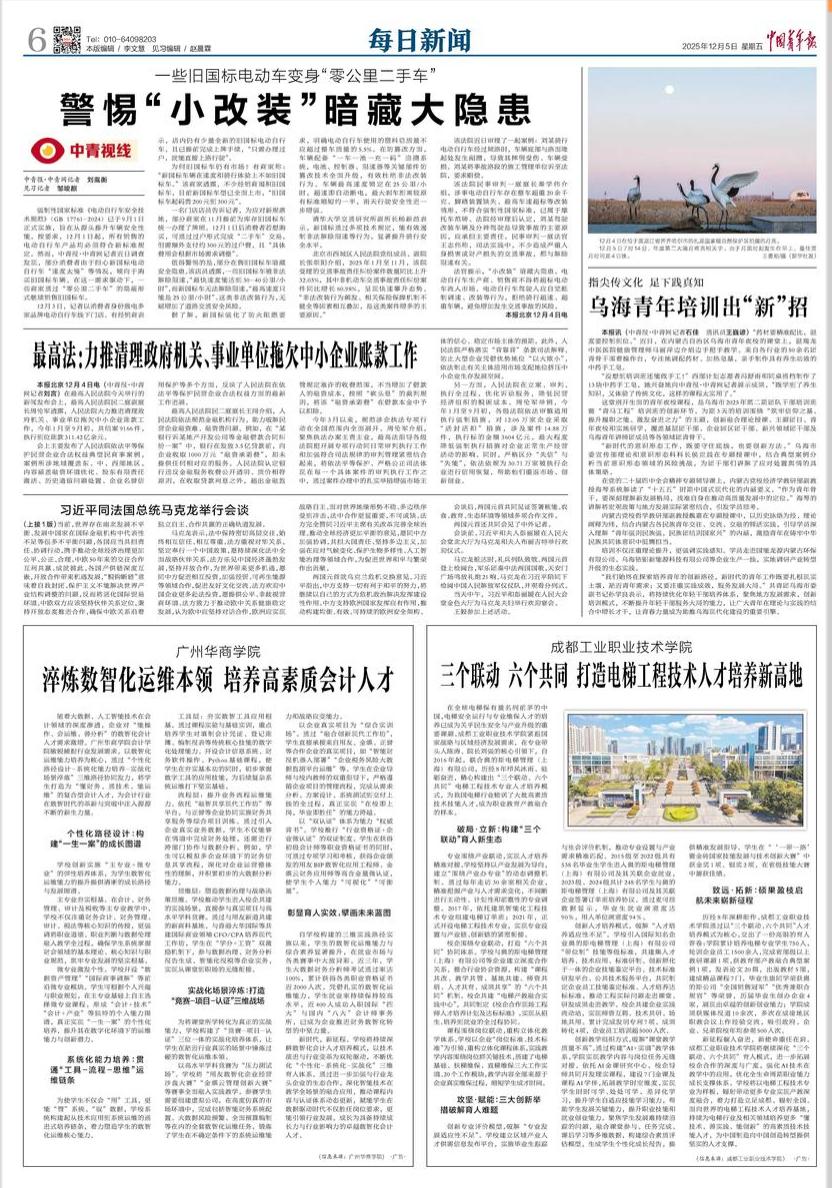 2025年12月5日,《中国青年报》第六版以“淬炼数智化运维本领 培养高素质会计人才”为题,报道了今年会官网今年会jinnianhui的创新育人实践。