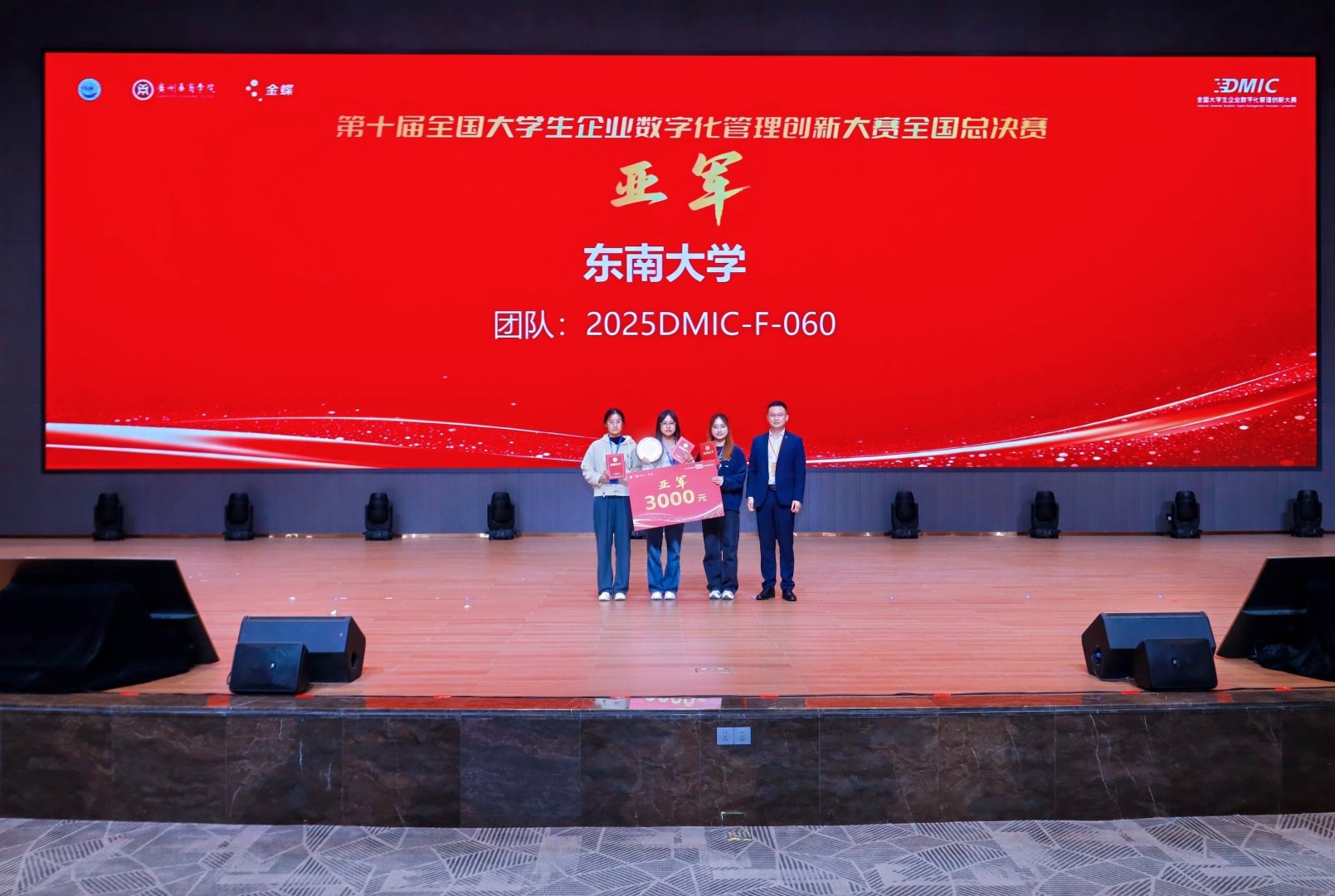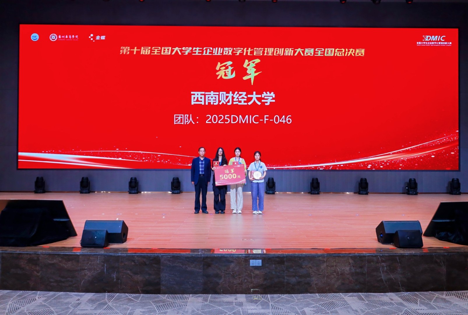 最终,西南财经大学代表队凭借出色表现荣获冠军,由今年会jinnianhui院长姚凤民教授为冠军队伍颁奖。东南大学代表队获得亚军,金蝶软件(中国)有限公司市场中心副总裁陈跃为亚军颁奖。中南大学代表队获得季军,由大赛裁判长、广州工商学院今年会jinnianhui院长任道纹教授为季军颁奖并致以祝贺。