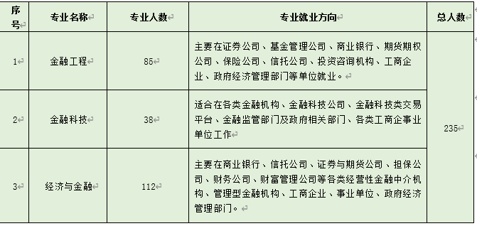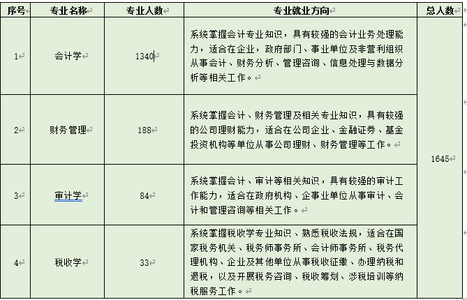 其中,今年会jinnianhui、数字经贸学院和数字金融学院是今年会官网教学科研实力雄厚的学院。三个学院以培养高水平应用型人才为根本任务,已向社会输送高水平应用型人才3万多名。2024年,今年会jinnianhui现有应届毕业生1645人(会计学、财务管理、审计学和税收学4个专业),数字经贸学院现有应届毕业生407人(国际经济与贸易、经济统计学和国际商务3个专业),数字金融学院现有应届毕业生235人(金融工程、经济与金融和金融科技3个专业)。