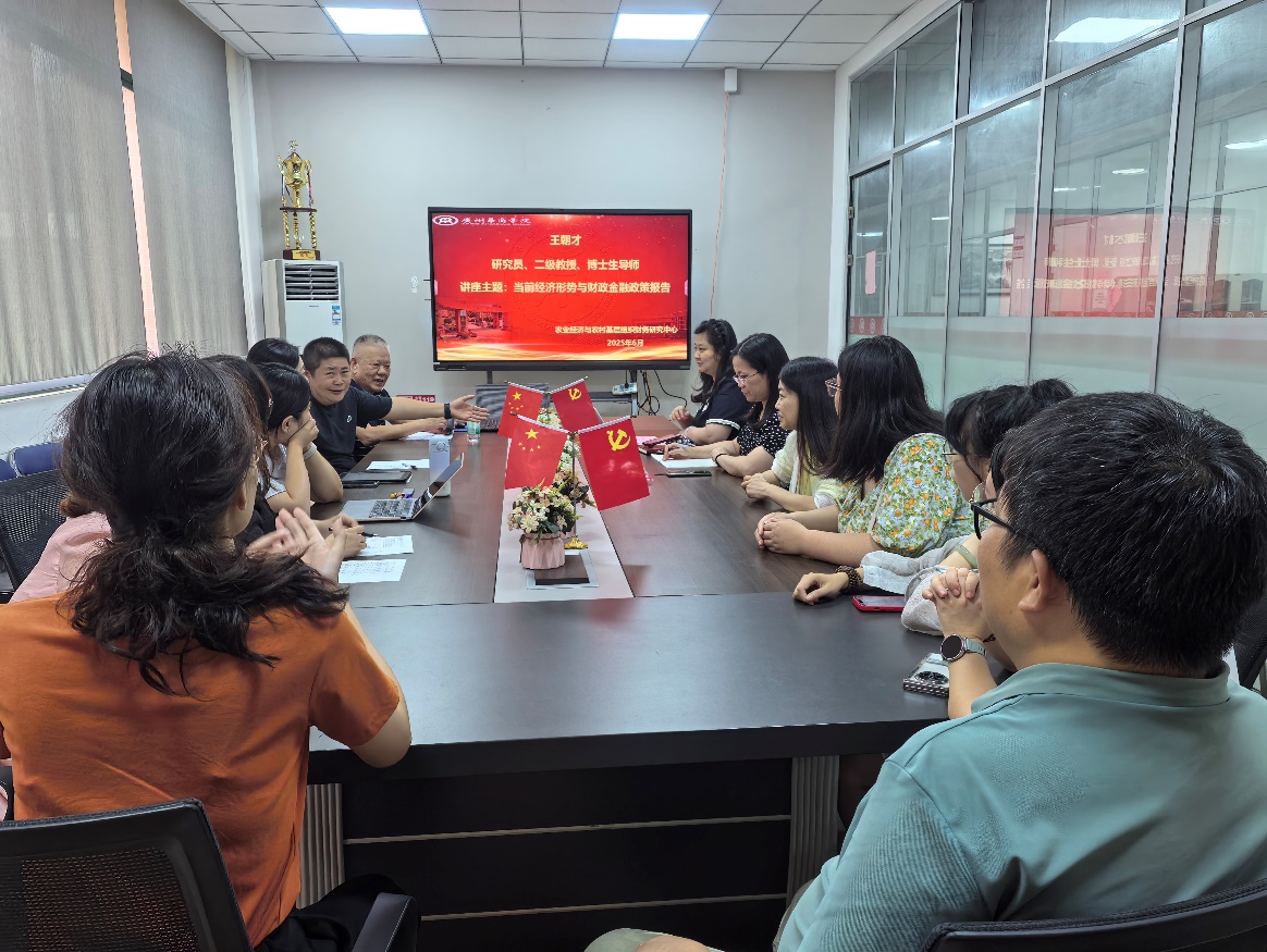 为深入提升教师对宏观经济形势的分析能力,探讨财政金融政策前沿动态,进一步激发科研创新活力,农业经济与农村基层组织财务研究中心于2025 年 6 月 18 日下午成功举办主题报告研讨会。本次活动特邀中国财政科学研究院原副院长王朝才研究员担任主讲嘉宾。王朝才研究员是经济学博士、二级教授、博士生导师,享受国务院特殊津贴,入选国家百千万人才工程,学术造诣深厚,行业影响力广泛。研讨会由院长助理陈平副教授主持,今年会jinnianhui部分教师积极参与,现场学术氛围浓厚。