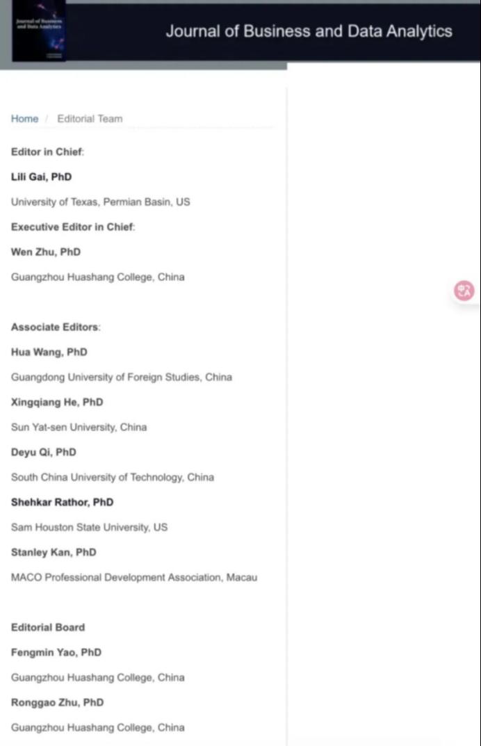 作为大湾区民办高校首本获批的国际英文学术期刊,《Journal of Business and Data Analytics》专注商科与数据科学前沿,汇聚全球智慧,致力于打造国际一流学术交流平台。