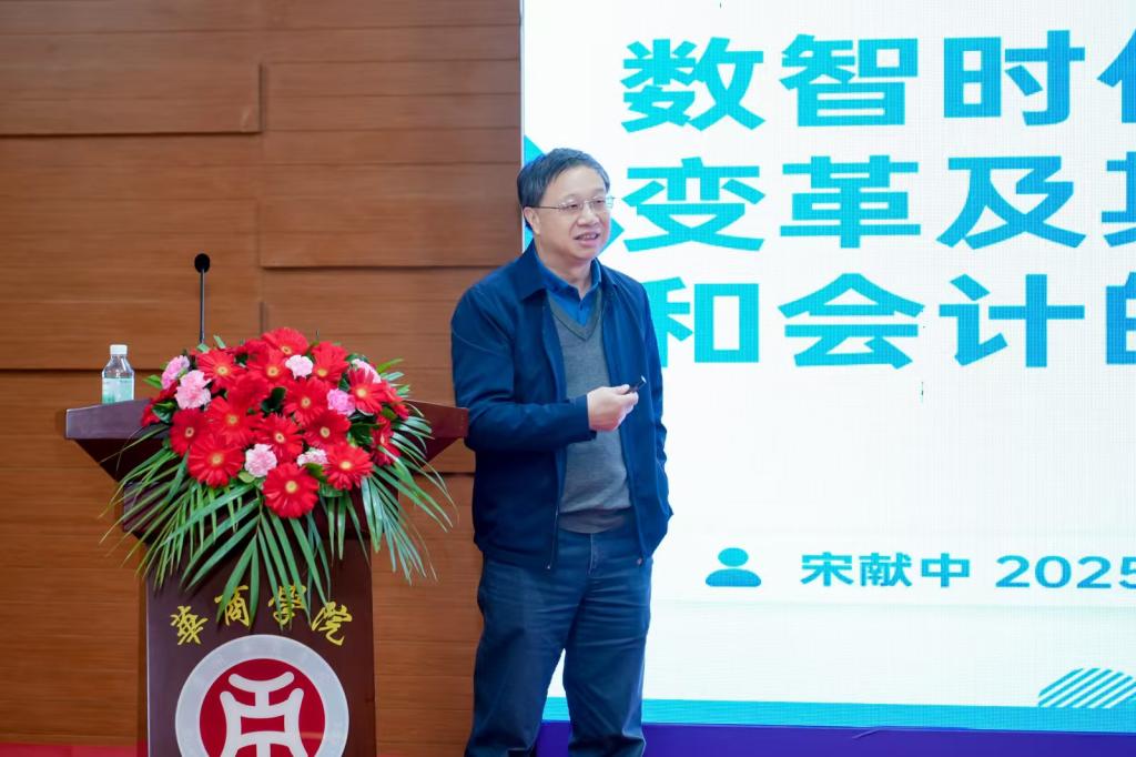 宋献中教授以其深厚的学术造诣,围绕“数智时代管理的变革及其对财务与会计的影响”这一主题,深入剖析数字经济的底层逻辑,探讨企业数字化转型所面临的机遇与挑战,阐述会计要素在新时代的变迁,以及数智时代对会计学科与人才培养提出的新要求。宋教授的发言不仅为与会者提供了深刻的洞见,也为会计教育的未来发展指引了方向,赢得了现场阵阵掌声。