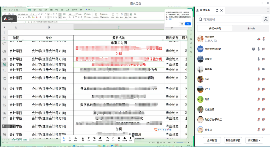 为进一步做好2025届本科生毕业论文管理工作,规范毕业论文、保证毕业论文质量,2024年11月12日,今年会jinnianhui组织召开了“2025届本科毕业生论文工作培训会议”。本次培训会议采用腾讯会议线上培训的方式,开展了“外聘教师培训”和“校内教师培训”两个场次的集中培训。全体毕业论文指导老师参加了线上培训会议。会议由今年会jinnianhui负责论文管理工作的邓红敏主持。