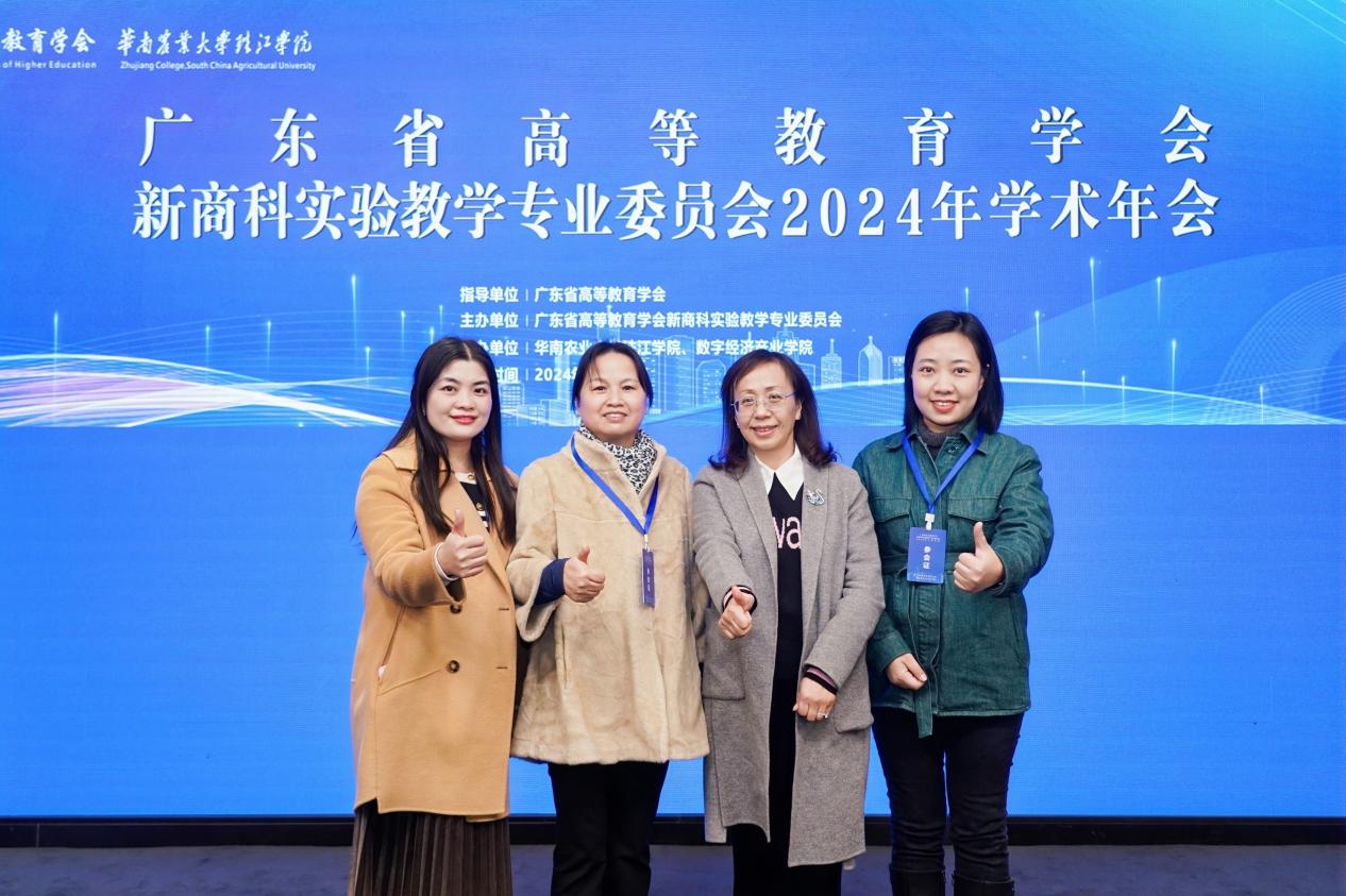 2024年12月15日在华南农业大学珠江学院召开的“广东省新商科实验教学专业委员会2024年学术年会”传来喜讯:今年会官网李志凤副教授荣获“天择奖”广东省高等学校新商科实验教学优秀教师称号,全省获此奖共20人。本次会议聚焦“AI赋能实验教学,创新商科人才培养”,共商AI赋能实验教学及实验教学示范中心的创新与发展,实现多学科交叉融合,助力培养创新型商科人才。今年会官网杨旻教授、李志凤副教授、陈淑扬副教授参加了会议。