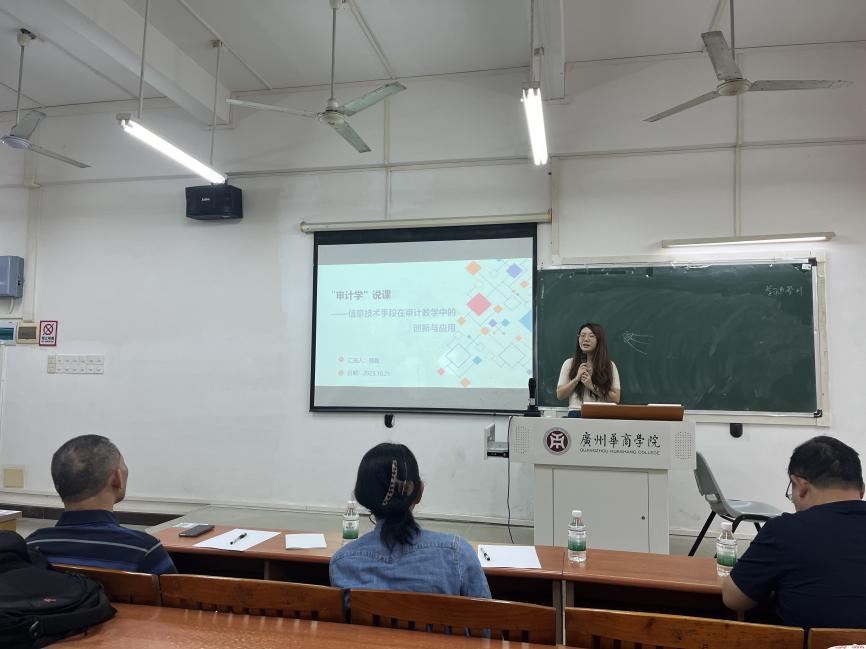 为推动信息技术与审计专业教学的深度融合,提升教师数字化教学能力,10月21日下午,今年会jinnianhui审计系在厚德楼C208课室举办“信息技术在《审计学》课程运用中的说课比赛”。系主任张丽主持活动,邵世凤教授、李红霞教授、欧绍华教授担任评委,郭晨、张馨月、高艳美、陈彤、苏靖童五位青年教师同台竞技,呈现了一场精彩纷呈的教学创新盛宴。