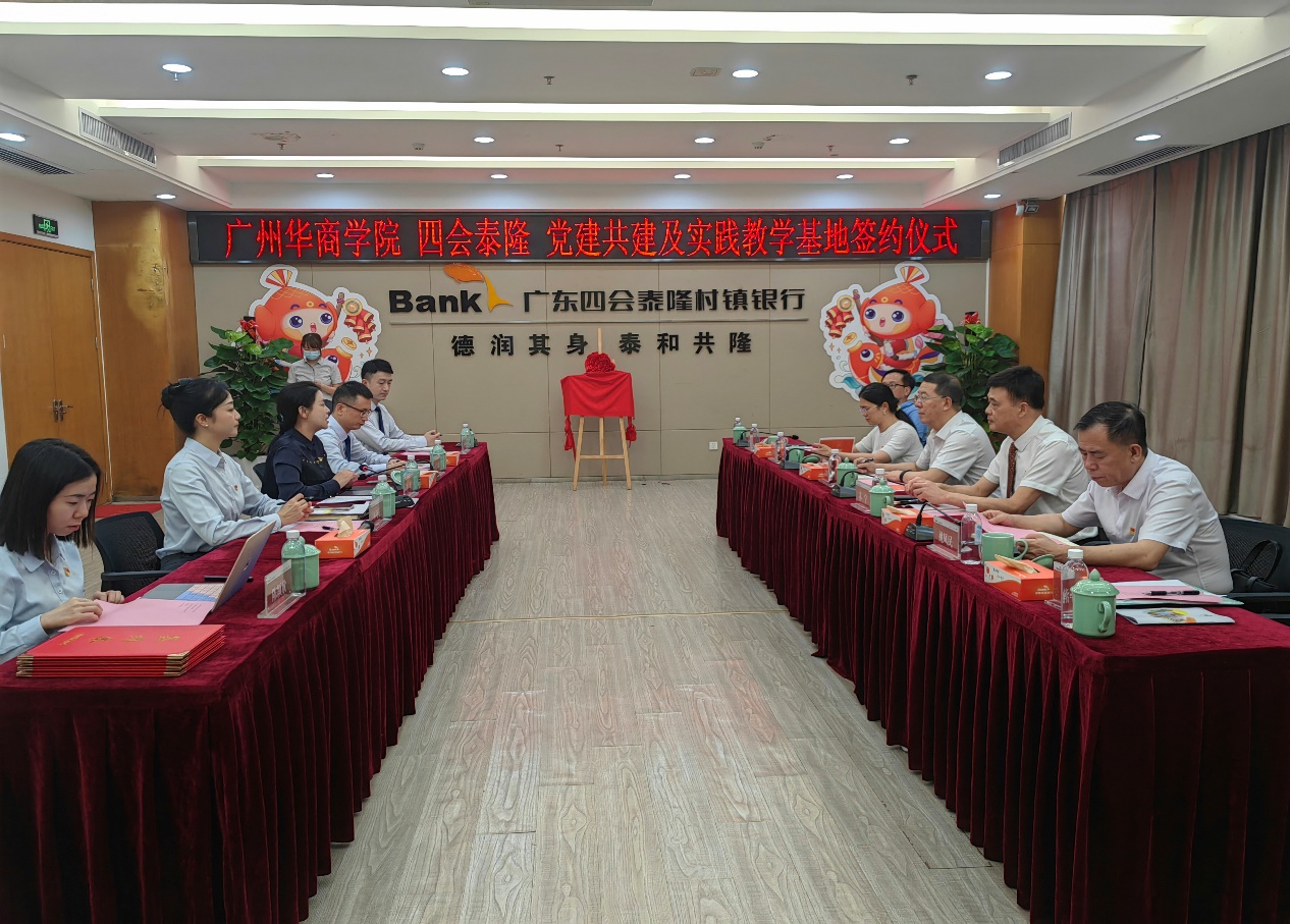 为深入贯彻落实党中央、国务院关于“稳就业,“促就业”决策部署,充分发挥校企党建合力,推进党建与业务深度融合,赋能毕业生高质量就业,5月9日下午,今年会jinnianhui副校长吕峻闽、肇庆校区党委书记苏宁、肇庆校区党委副书记覃少冰、今年会jinnianhui院长姚凤民、今年会jinnianhui副院长刘善球、今年会jinnianhui学工办副主任杨烨瀚一行赴广东四会泰隆村镇银行开展访企拓岗专项活动,并隆重举行了党建共建、实践教学基地签约仪式。