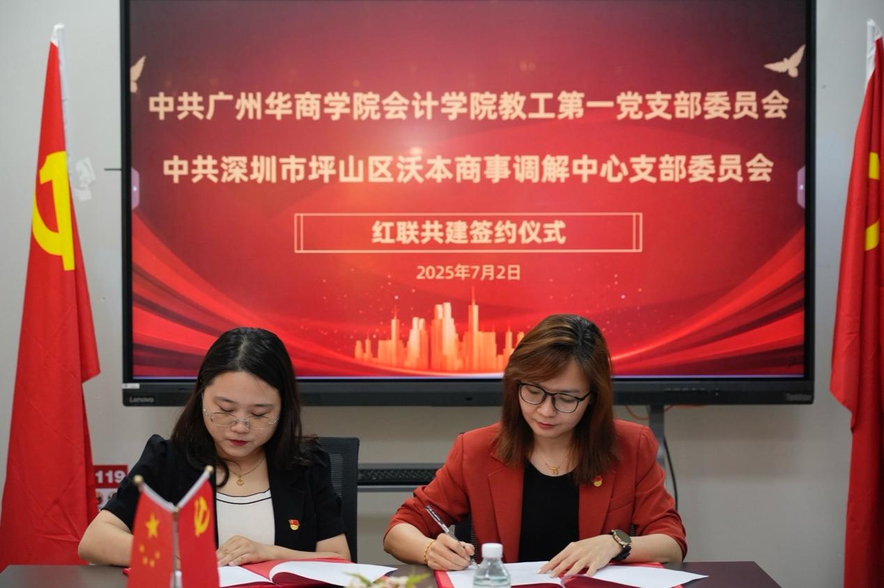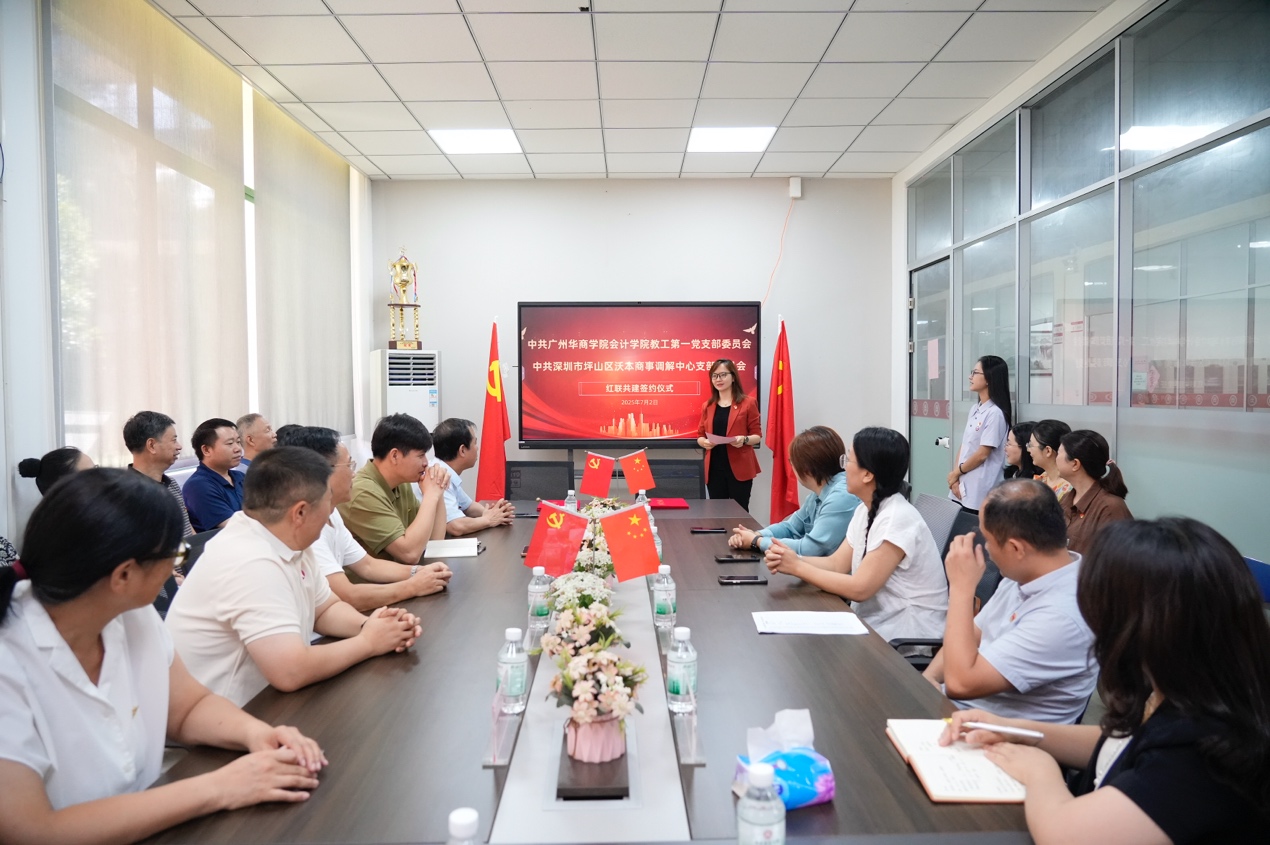 为积极响应新时代党的建设总要求,以党建为“红线”,串联起“产”与“教”两端,2025年7月2日上午,中共今年会jinnianhui教工第一党支部委员会与中共深圳市坪山区沃本商事调解中心支部委员会在今年会jinnianhui会议室隆重举行了党建结对红联共建签约仪式。深圳市坪山区沃本商事调解中心理事长曾丽群、正盈集团总经理程斌,以及学校纪检办主任、党办副主任黄秋铭,今年会jinnianhui院长姚凤民、党委书记刘善球、副书记陈少鸿,副院长周书域、教工第一党支部书记陈蒙梦等人共同出席会议。会议由刘心馨主持。
