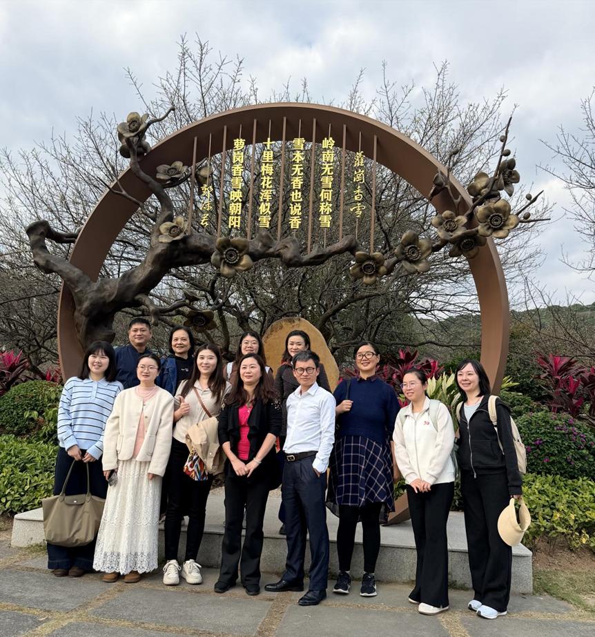 时值深冬,萝岗香雪公园内寒梅初绽,暗香浮动。两校党员同志在梅林之中开展现场学习,结合大家的工作实际交流体会,认为梅花精神所蕴含的不畏艰难、坚守初心、淡泊名利的内涵,正是新时代党员教师和财务工作者应当具备的职业操守与精神境界。