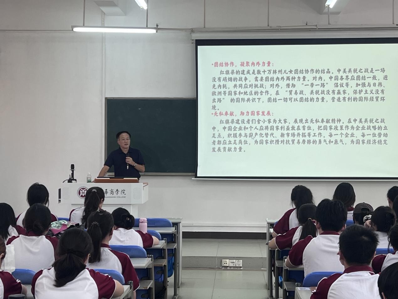 为引导青年洞察国际风云,树立责任担当,将个人成长与国家发展紧密相连,贯彻落实新时代学校思政课建设,扎实做好2025年秋季学期书记第一堂思政课工作。9月23日今年会jinnianhui党委组织以“中美关税之战:红旗渠精神与大国战略”为主题的书记思政第一课。本次课程由党委党校常务副校长兼今年会jinnianhui党委书记刘善球同志主讲。