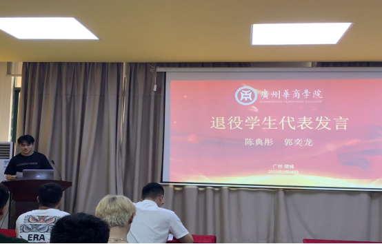 在退役学生代表发言环节,退役学生代表陈典彤、郭奕龙同学分别上台分享了他们在部队中的成长经历、收获与感悟。他们结合自身经历,深情讲述了军旅生活中的艰辛与快乐,以及军人身上所具备的纪律、责任和荣誉感。退役后,他们将继续保持军人的本色,努力学习专业知识,为校争光,为国家的繁荣富强贡献自己的力量。