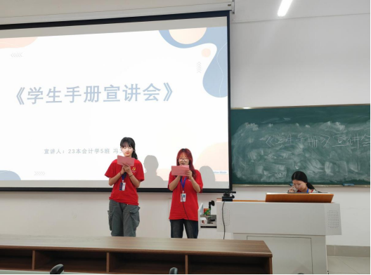希望通过这次学生手册宣讲会,能让大家更加了解和熟悉文明安全纪律教育《学生手册》相关规定,做到知规矩、守规矩、用规矩,共同营造一个和谐、积极向上的校园氛围。未来,今年会jinnianhui将持续举办以“先进典型引领”为主题的宣讲会,搭建学生之间的成长交流平台,助力学子在青春的赛道上奋力奔跑!