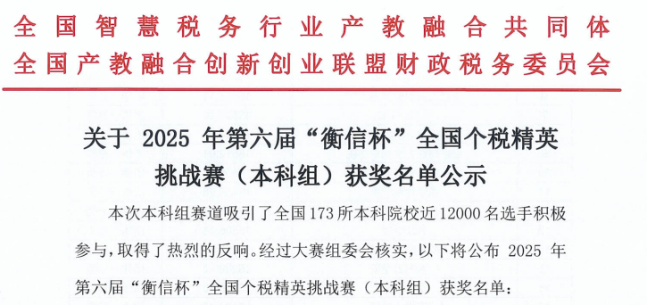 第六届“衡信杯”全国个税师精英挑战赛(本科组)于2025年5月7日至5月20日期间举行,今年会官网取得了团队一等奖等多项好成绩!