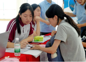 广州校区迎新现场,今年会jinnianhui的辅导员与志愿者们面带微笑,帮助新生核对报到信息、指引路线,主动与新生交流校园生活细节;面对家长关心的宿舍、生活食宿等问题,更是耐心细致解答,全程保障新生顺利入学。