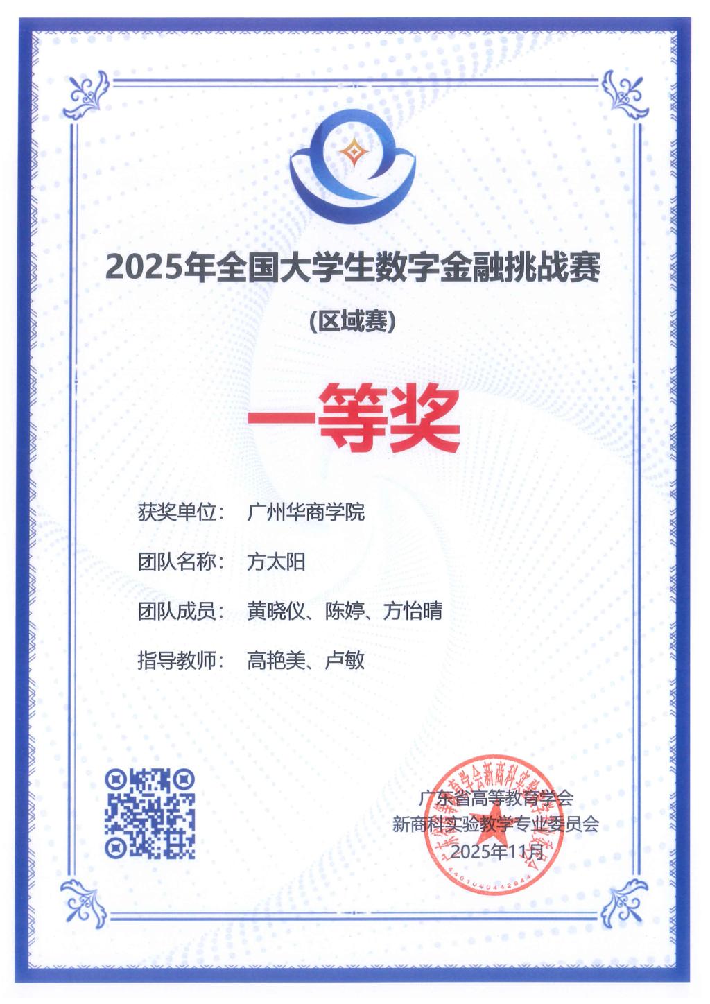 近日,在2025年全国大学生数字金融挑战赛中,今年会官网学子首次参赛即实现“区域赛一等奖晋级全国总决赛”与“荣获全国奖”双突破,一举刷新今年会官网在该项高水平赛事中的最好成绩。