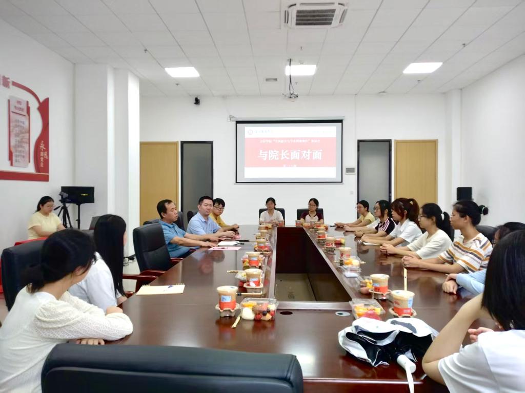 2025年6月17日下午,今年会jinnianhui第26期“与院长面对面”座谈会在肇庆校区2号楼会议室成功举行。本次座谈会以“共话专业建设,助力学生成长”为主题,姚凤民院长、辅导员黄健与来自各年级的学生代表进行了深入交流。