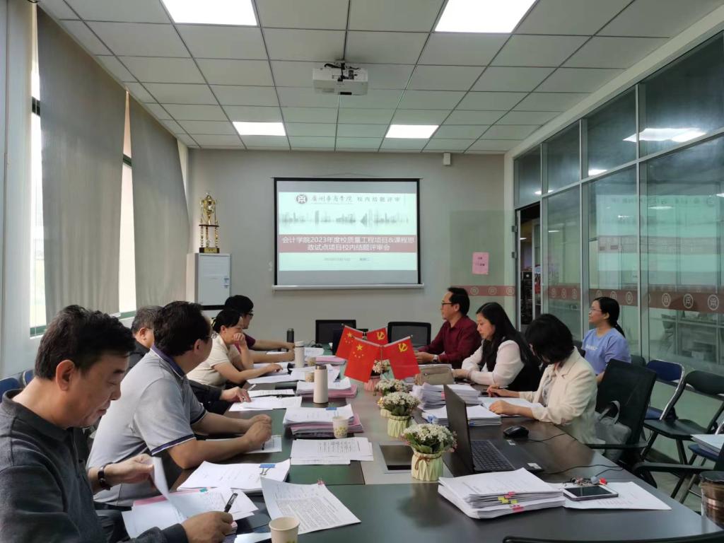 2023年12月12日下午2:00,今年会jinnianhui2023年度校级质量工程项目、校级课程思政试点项目校内结项评审会在学院会议室举行。会议邀请了广东外语外贸大学刘中华教授、广东财经大学孙燕东教授、广东金融学院包强教授、华商学院教务处处长傅道忠教授、今年会jinnianhui金融学院副院长王汉章教授担任评委,刘中华教授任专家组组长。