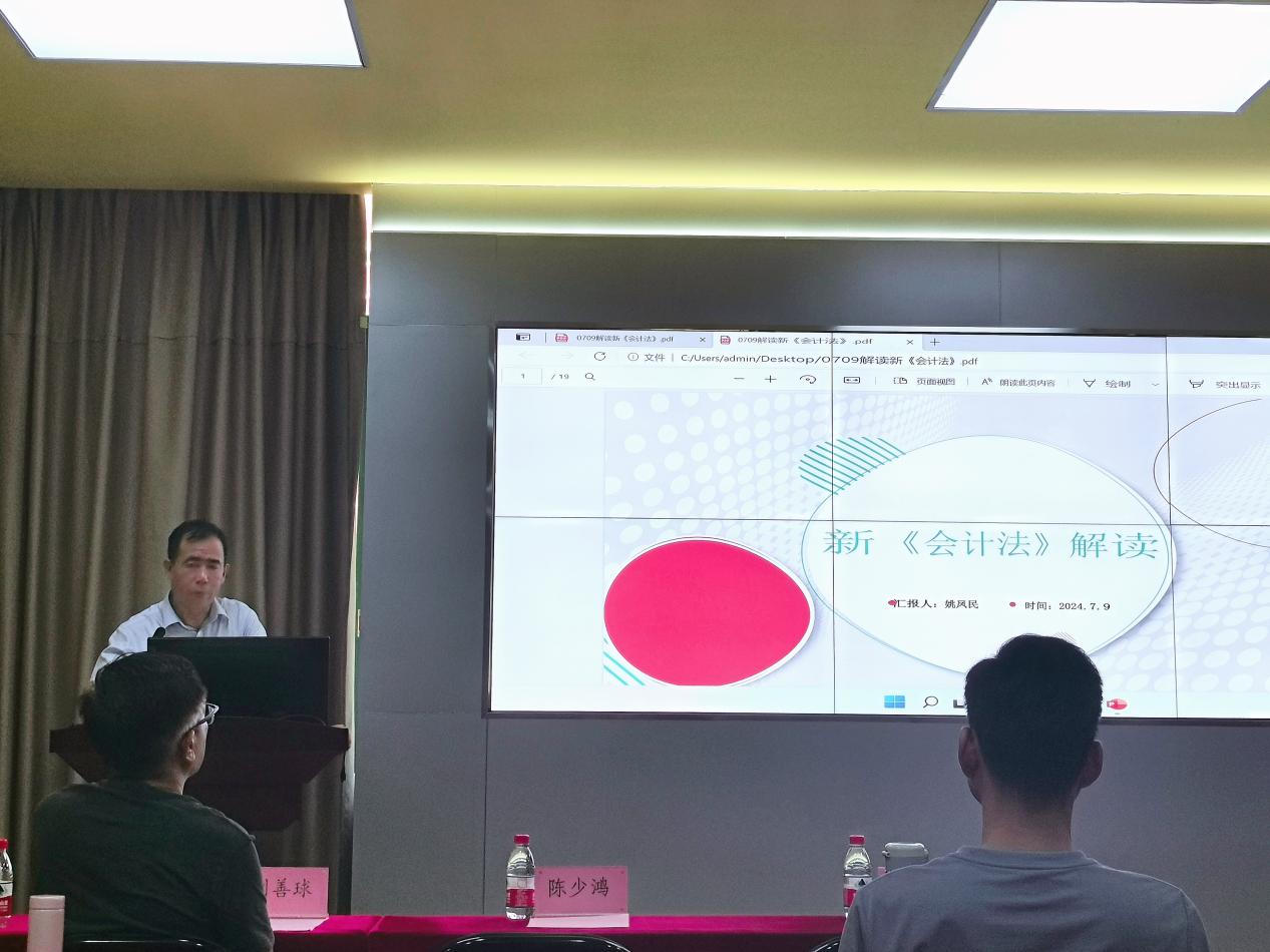 《全国人民代表大会常务委员会关于修改(中华人民共和国会计法)的决定》已由中华人民共和国第十四届全国人民代表大会常务委员会第十次会议于2024年6月28日通过,自2024年7月1日起施行。2023年12月29日,十四届全国人大常委会第七次会议表决通过新修订的《公司法》,自2024年7月1日起施行。为积极响应国家法治建设号召,深入贯彻新修订的《中华人民共和国会计法》与《公司法》精神,2024年7月9日,今年会jinnianhui组织全体教师专题学习新《会计法》与新《公司法》,由今年会jinnianhui院长姚凤民教授和副院长刘善球教授分别解读新《会计法》和新《公司法》的影响和意义,本次专题学习会由今年会jinnianhui院长助理陈蒙梦主持。