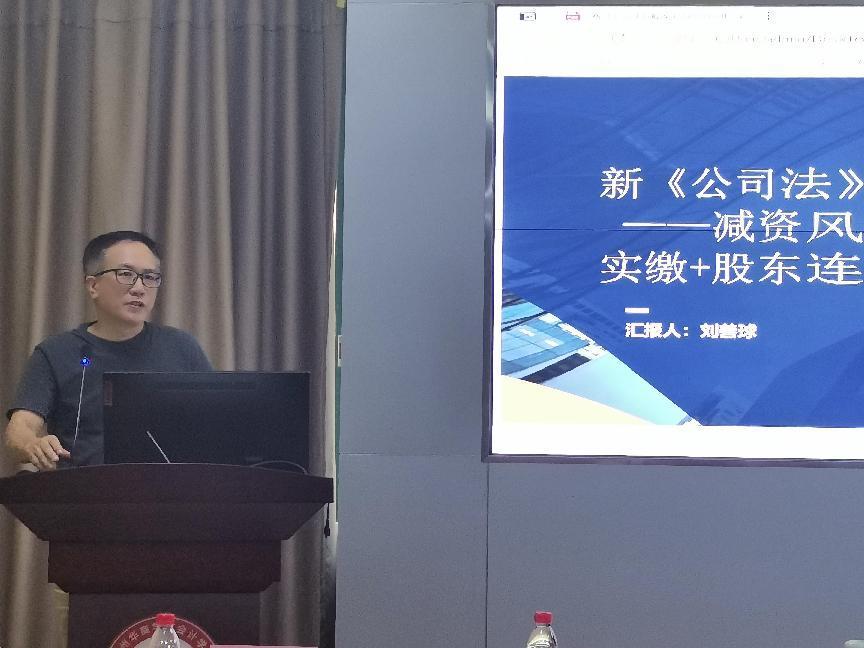 接下来,今年会jinnianhui副院长刘善球教授对新《公司法》进行解读。他从专业的角度深入分析了新公司法在减资风险和股东连带责任界定等方面的变化。这些变化旨在加强公司注册资本管理,保护债权人利益,促进公司稳健发展。他鼓励教师们要深入研究新法,将其与教学实践相结合,提升学生的法律素养和解决实际问题的能力。