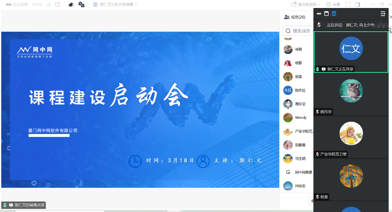在启动会上,正保网中网公司的负责人郭仁文详细阐述了课程建设的整体流程,涵盖了课程内容的构建、配套资源的整合以及平台搭建等多个关键环节。会议中还特别强调了课程知识点的梳理、PPT制作与讲稿优化等工作,并明确了在课程录制过程中需要注意的各项细节,如讲师形象要求、录制前的准备工作以及实际录制过程中的注意事项。这些细致的指导措施旨在确保课程质量的同时,提升整体教学效果。
